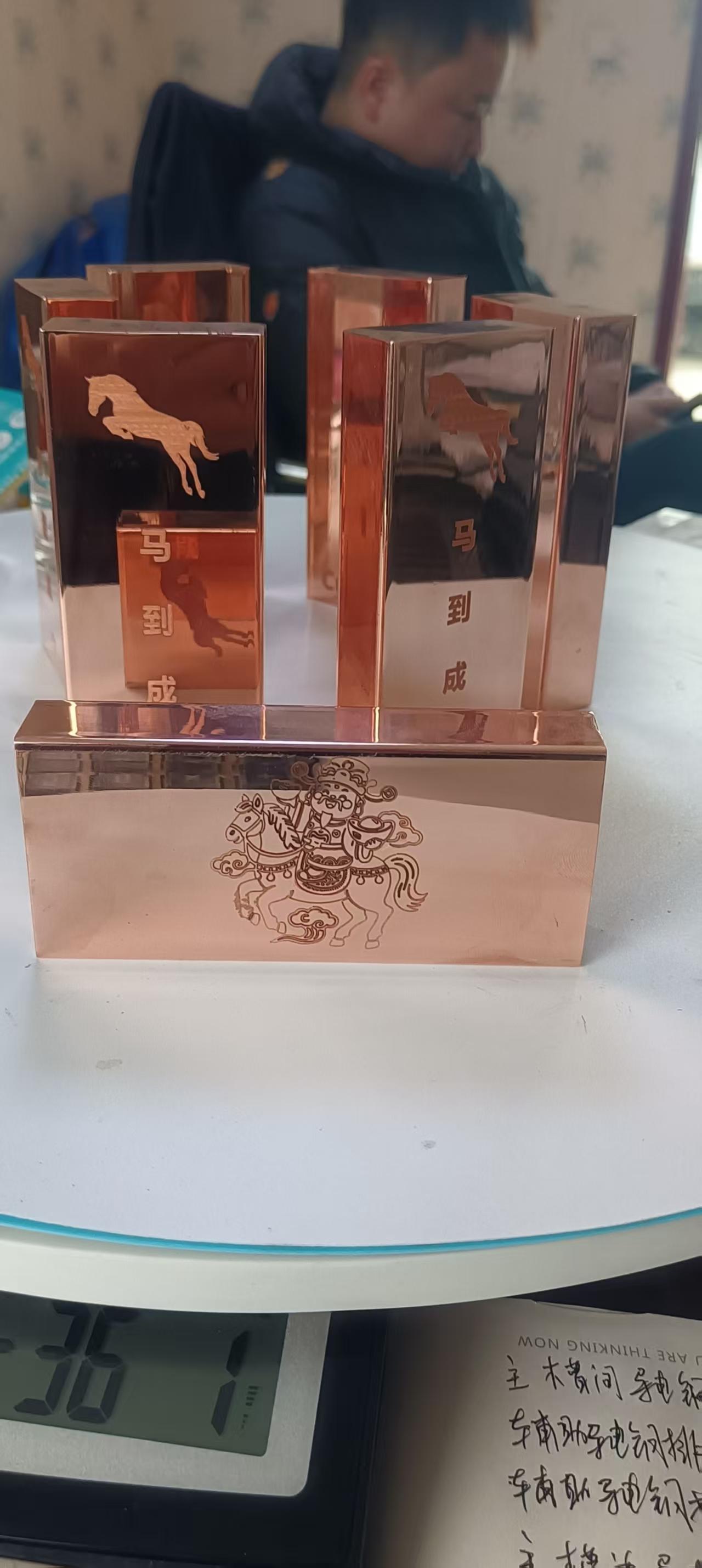 纯紫铜打造工艺品摆件,具有较好的收藏价值,可以根据不同需求在铜块表面制作各种图片和文字,最近比较火的有,一马当先,逢考必过,马到成功等美好寓意的文字,也可以制作图片,个人美照永久保存!